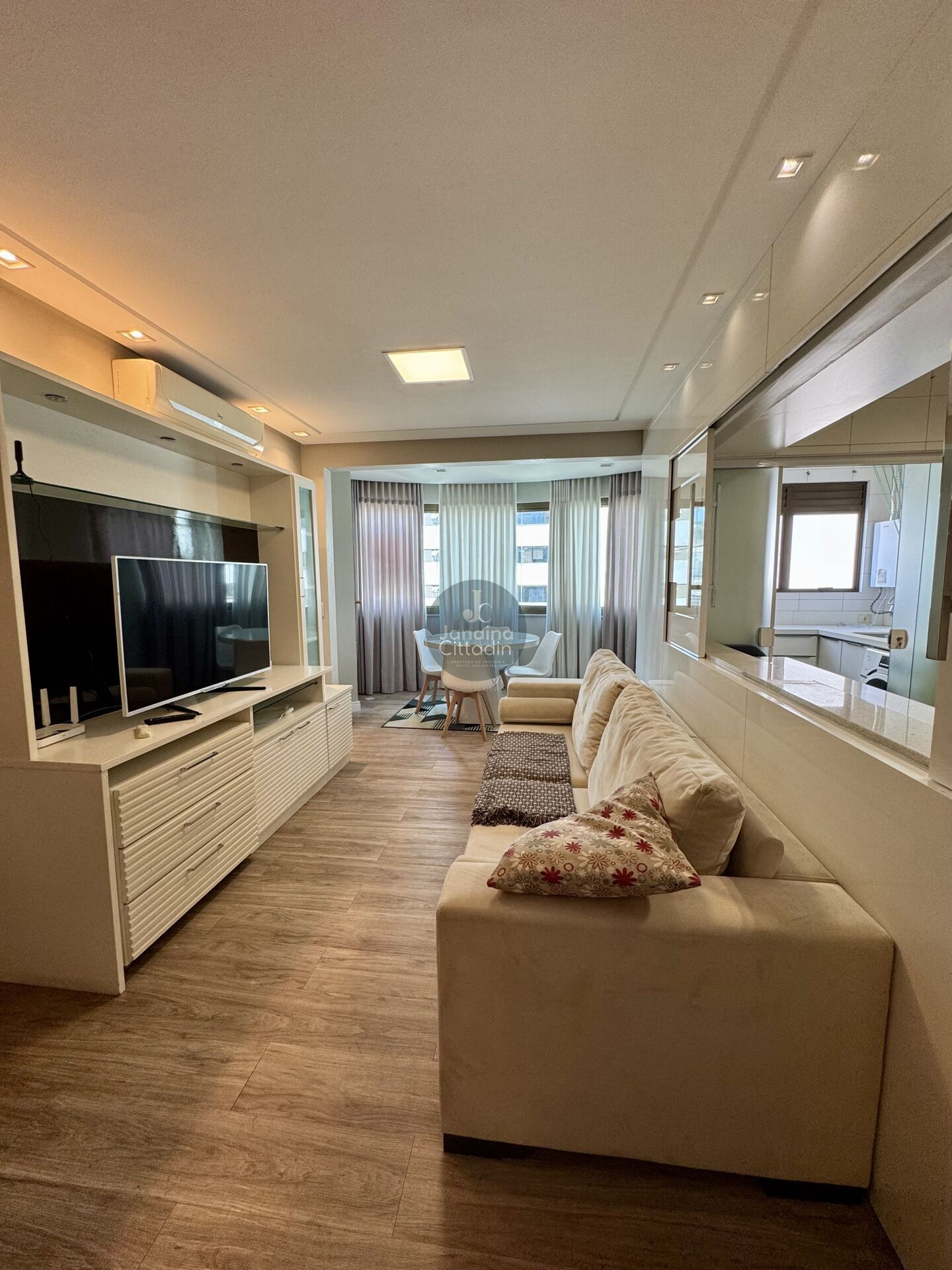 Revestimento em piso vinílico, móveis planejados em todos os ambientes, rebaixo em gesso com projeto de iluminação, além de sistema de aquecimento a gás.